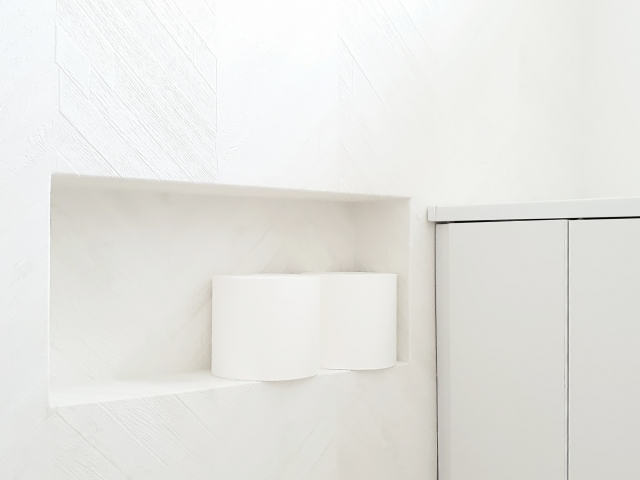 一般的なトイレの広さというのは、0.5~1畳ほどと言われています。0.5畳の場合だと便器を置くだけになってしまいますが、座ったままドアノブに手が届くといった利点もあります。0.75~1畳のスペースが確保できれば、手洗い場や小さなカウンター、収納スペースなどを設置でき、快適なトイレ空間に近づきますよ。特に、トイレットペーパーや掃除用具の収納スペースはあると便利ですよね。