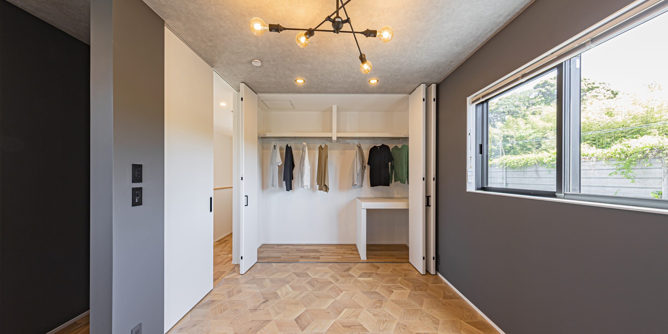また、寝室を「寝るだけのスペース」と割り切り、衣類はすべて1階のファミリークローゼットに集約させることで、家全体の動きがシンプルになり、各個室をスッキリ保つことができます。