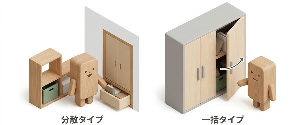 収納には大きく分けて2つのタイプがあります。自分たちがどちらに向いているかを考えてみてください。