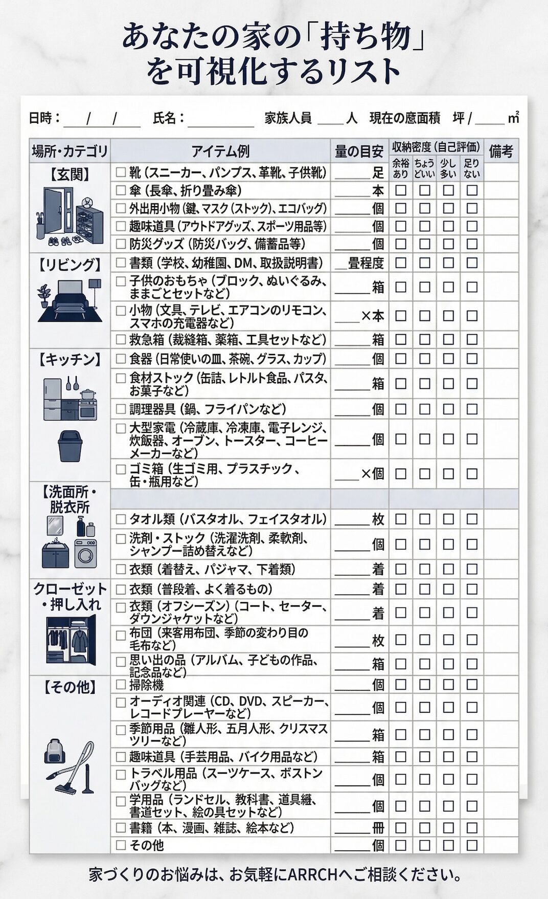 まずは自分たちの「収納スタイル」と「持ち物」を客観的に把握することが、後悔を防ぐ鍵になります。