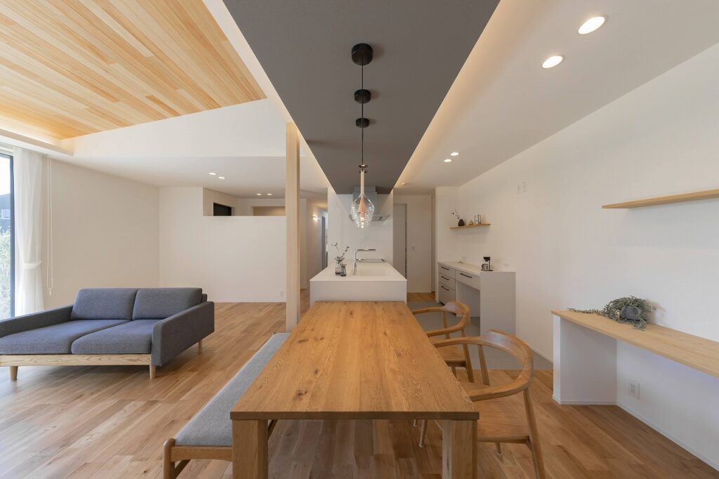 勾配天井の活用: 平屋の特権である屋根の形状を活かし、天井を高く設定します。視線が縦に抜けることで、同じ20帖でも圧倒的な開放感が生まれます。