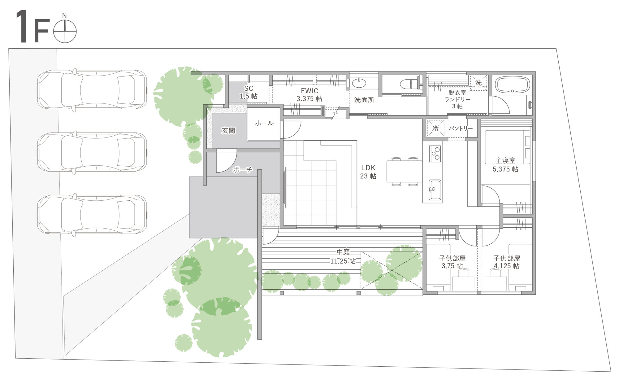 このように、「廊下」という通り道だけの空間を排除することで、4人家族でもゆとりある生活ゾーンを確保することが可能になるのです。
