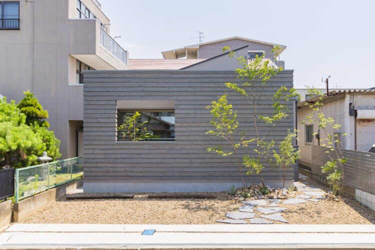「ひらく庭」と「とじる庭」二つの庭がある高台の家