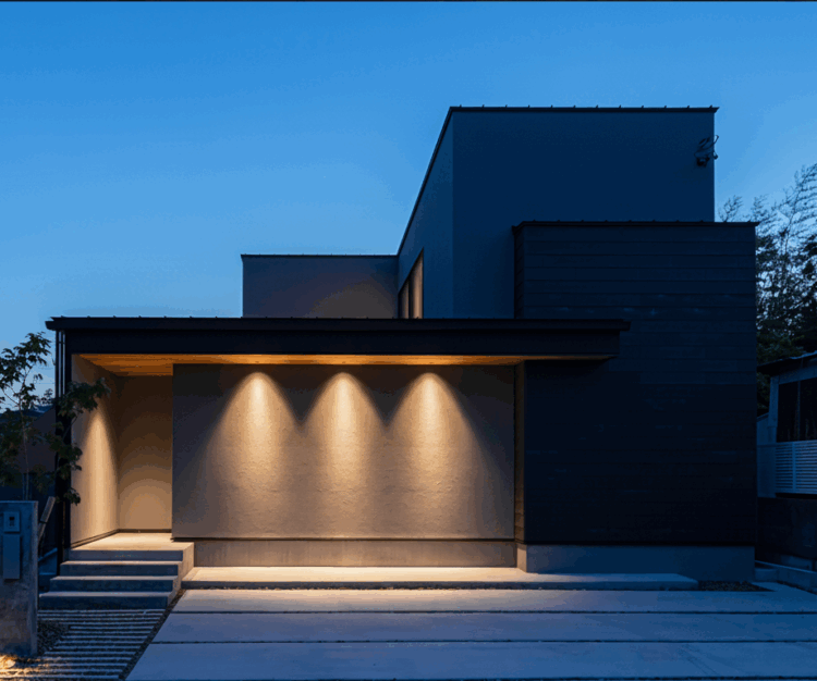 「ひらく庭」と「とじる庭」二つの庭がある高台の家