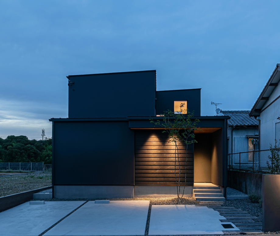 「ひらく庭」と「とじる庭」二つの庭がある高台の家
