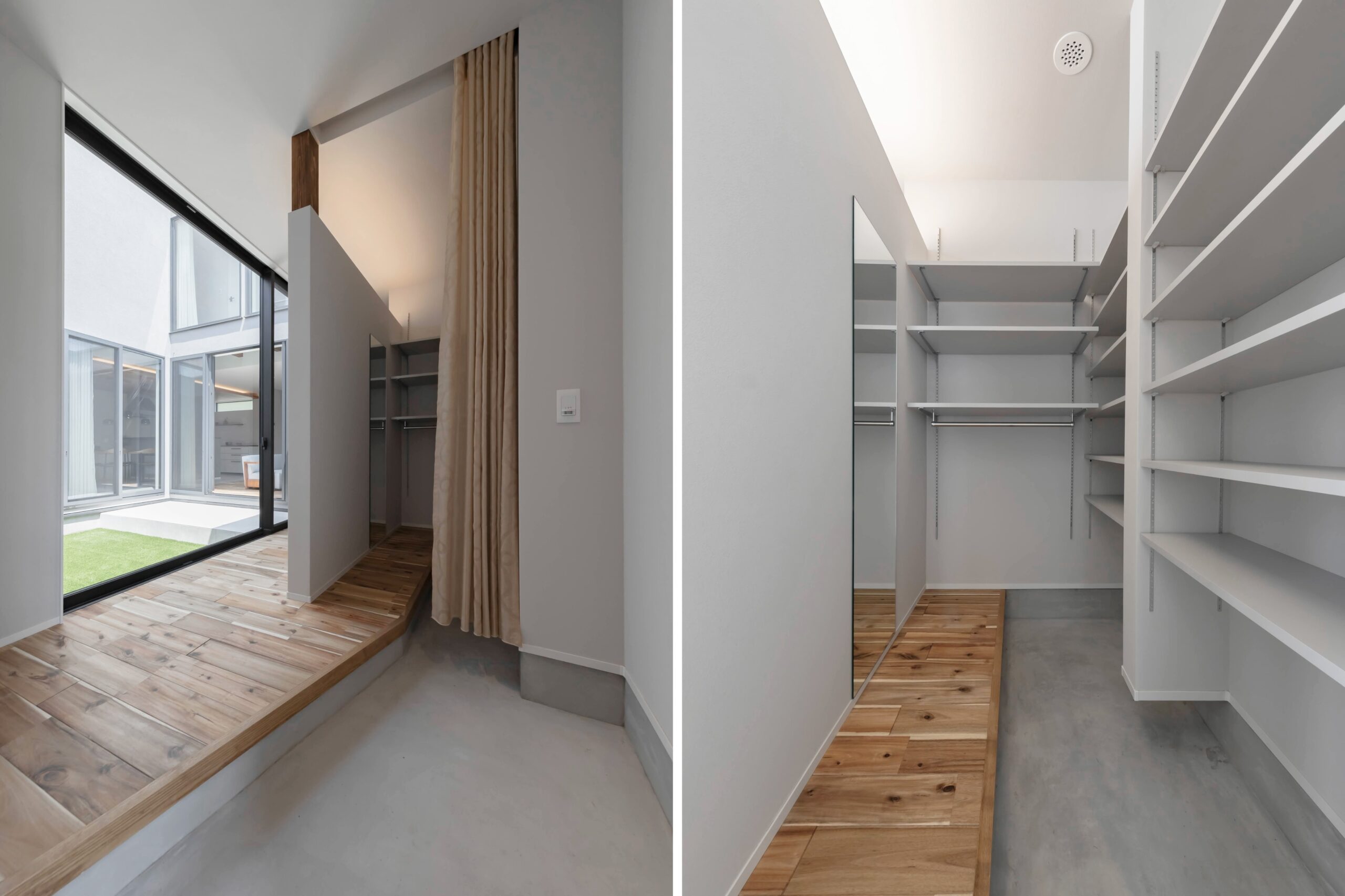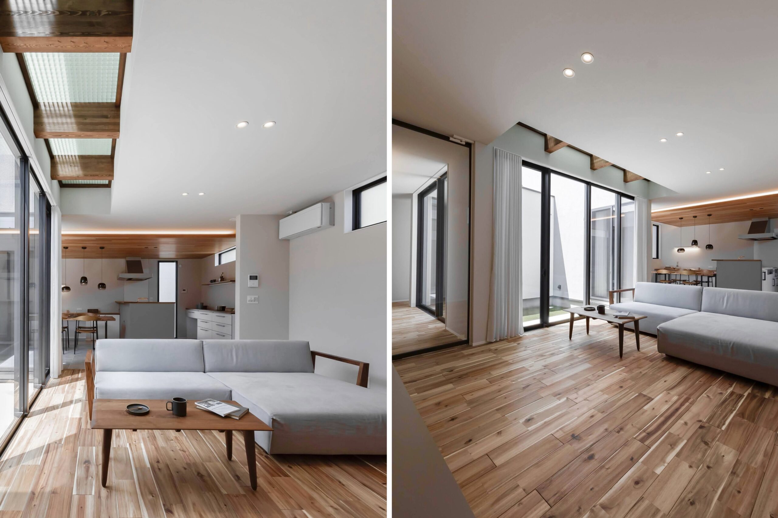 そこで建築家は「中庭から光をとりこむ家」という思想を掲げ、周囲の視線をやわらかく遮りながらも光と風を逃さないゾーニングを計画。