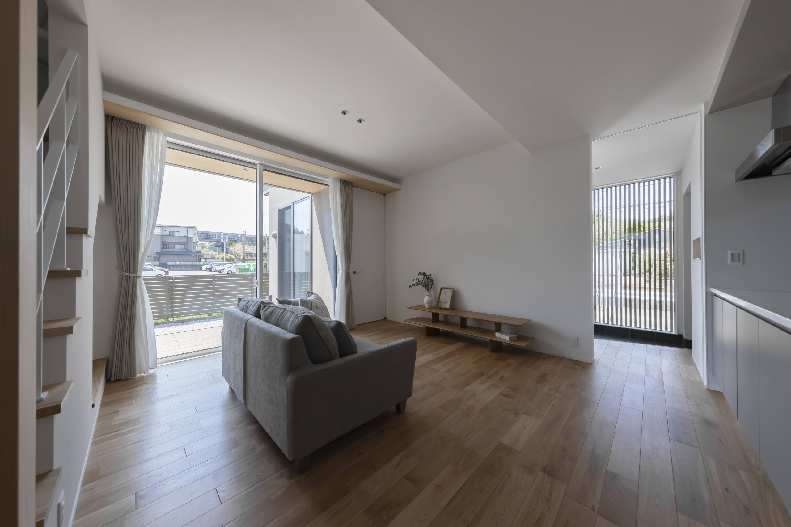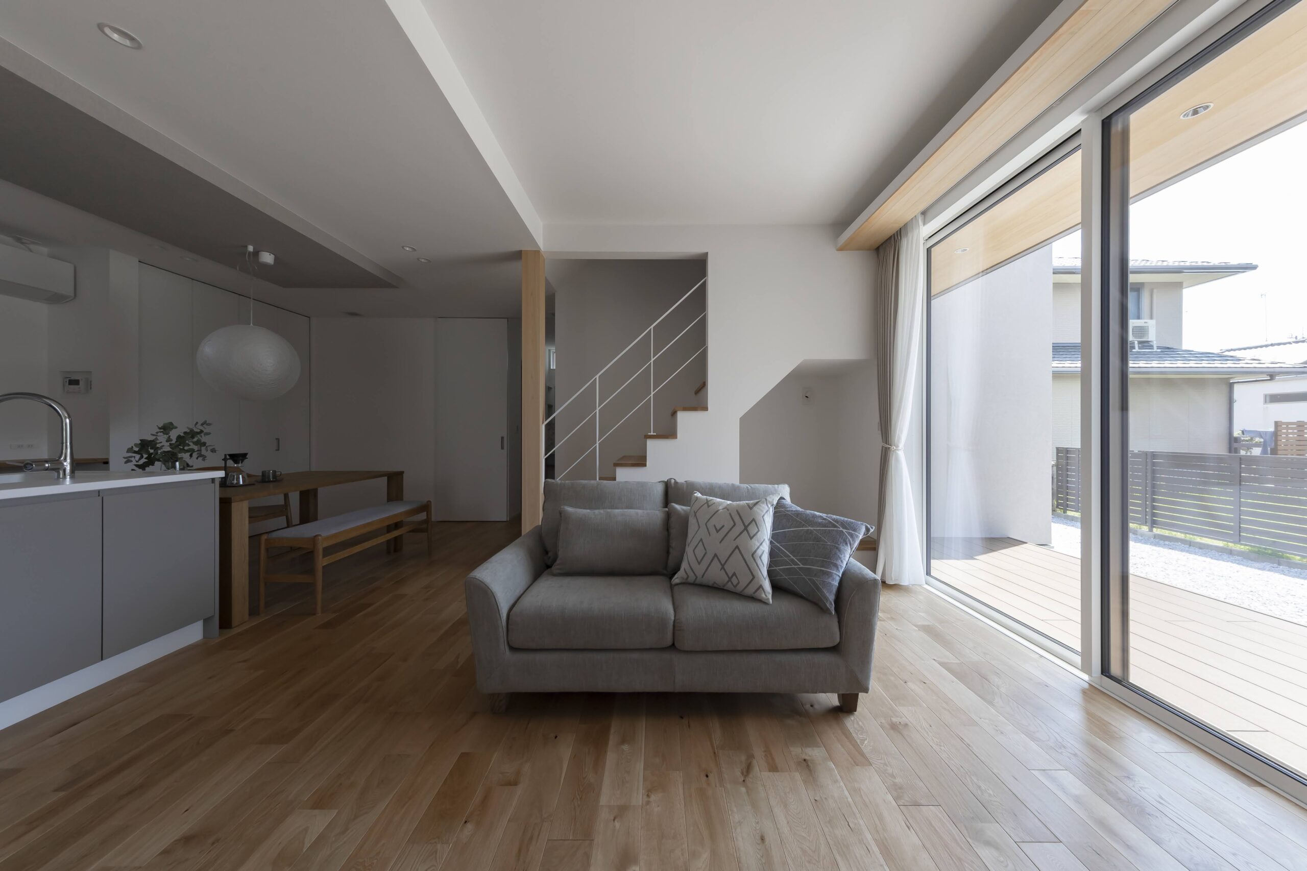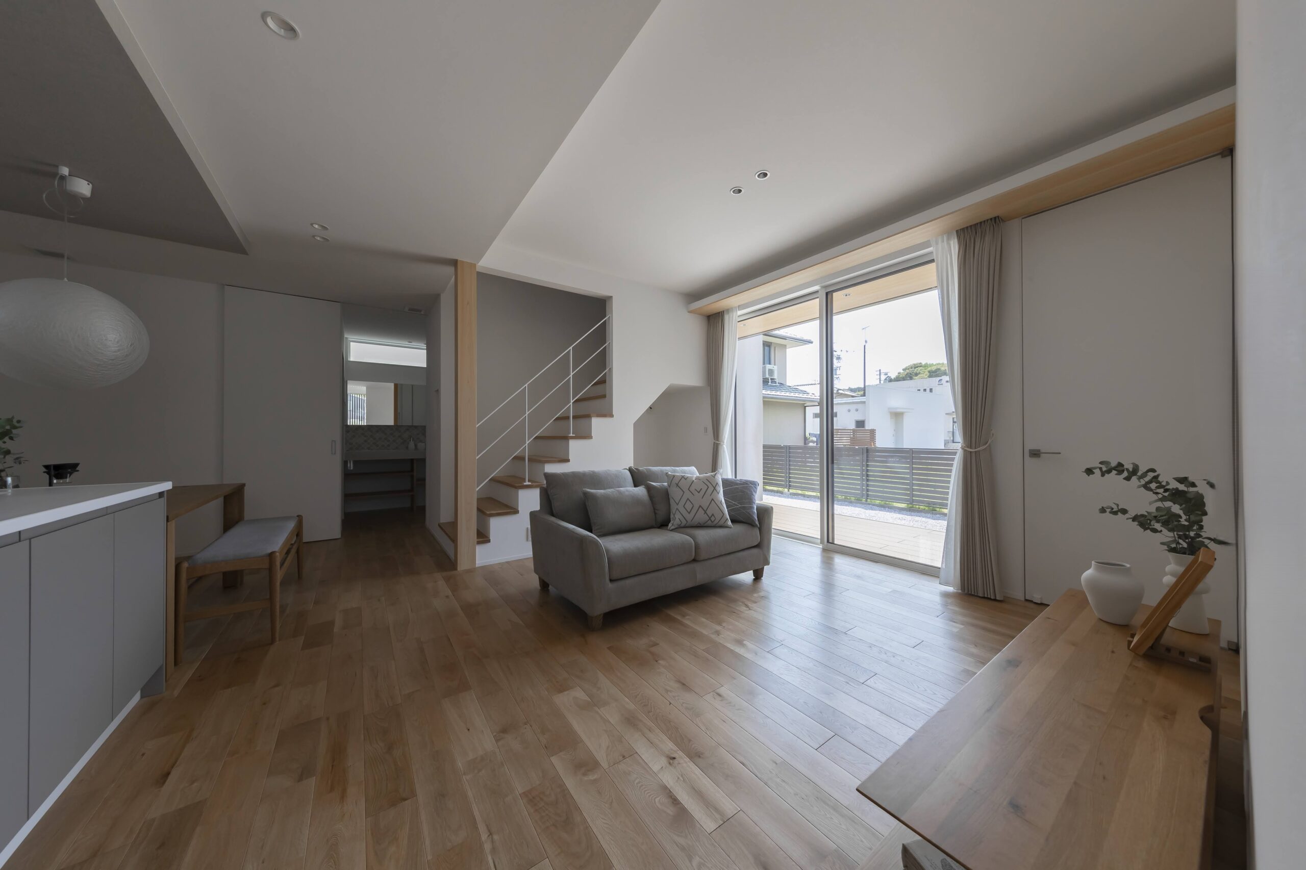 テラスを通じて内と外がゆるやかにつながり、窓を開ければ、風や光が軽やかに室内へ。自然を取り込みながら暮らす心地よさが広がります。