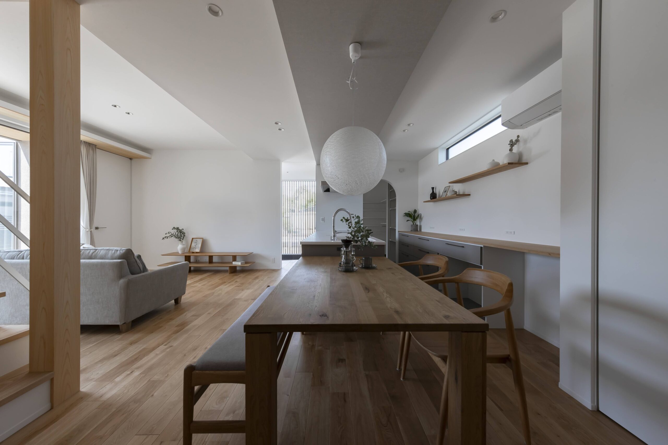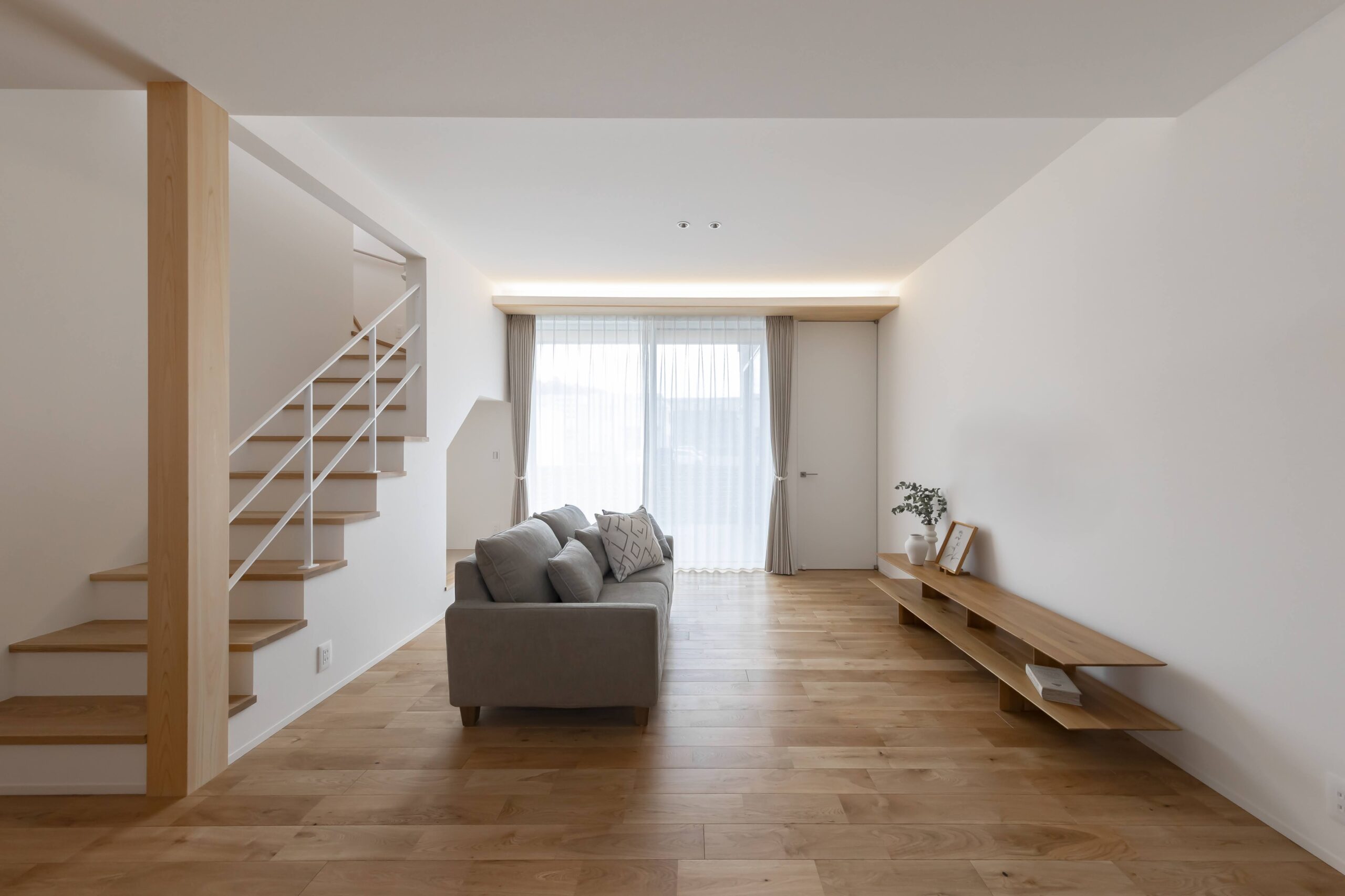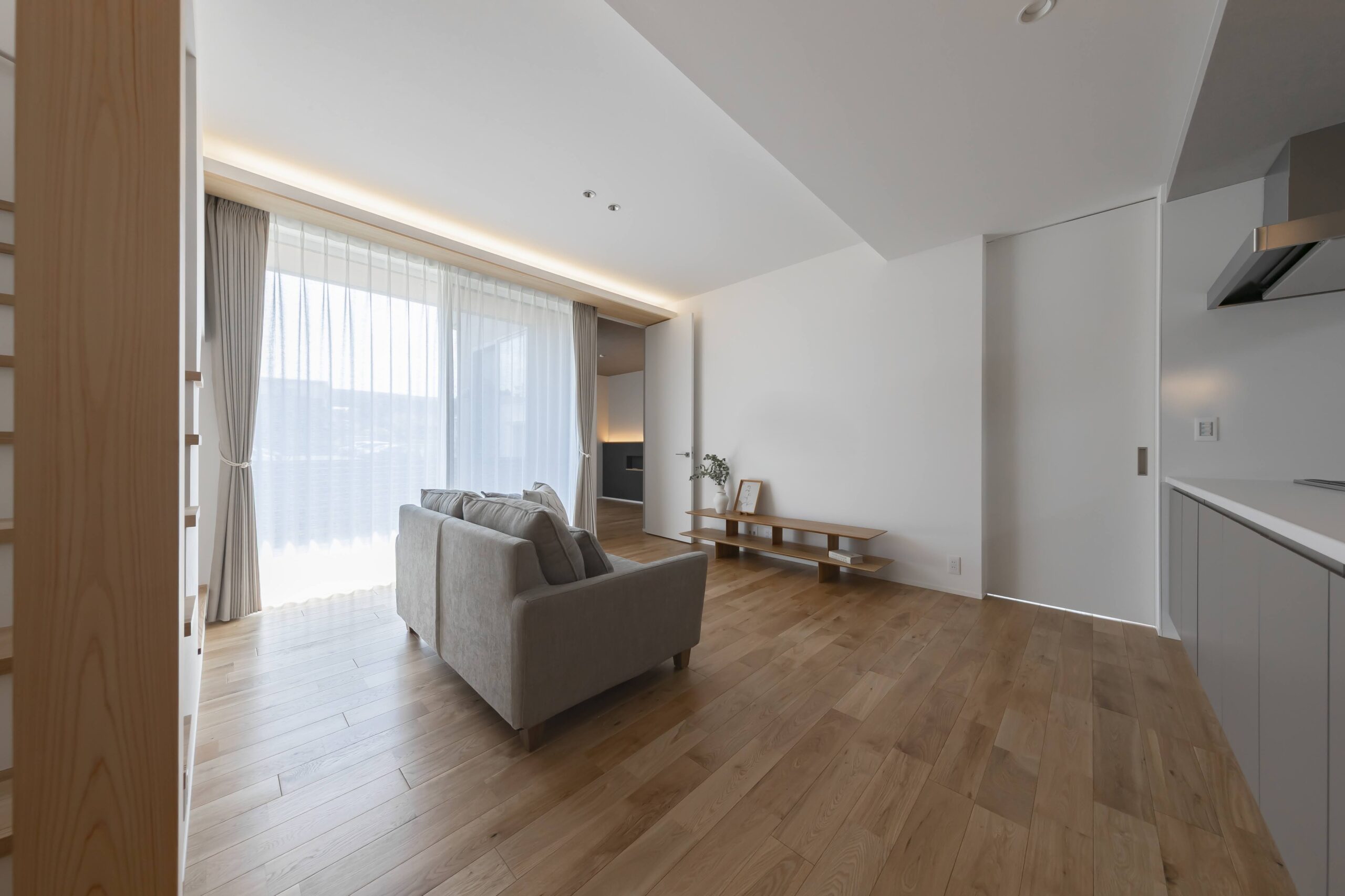 テラスを通じて内と外がゆるやかにつながり、窓を開ければ、風や光が軽やかに室内へ。自然を取り込みながら暮らす心地よさが広がります。