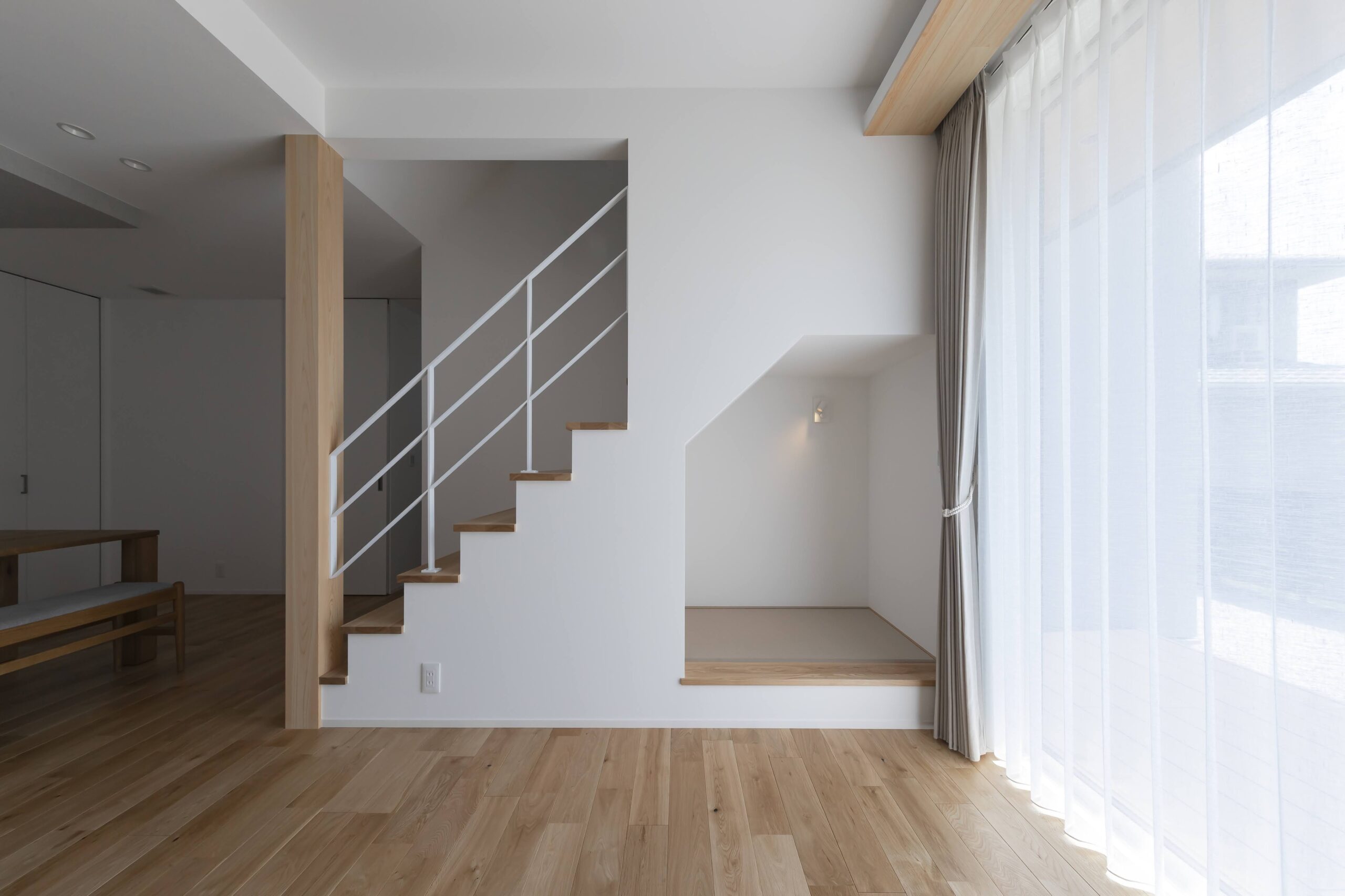 階段下の畳ヌックは、家族の気配を感じつつ、ほどよく籠れる小さな居場所。家族それぞれが思い思いにくつろげる空間です。