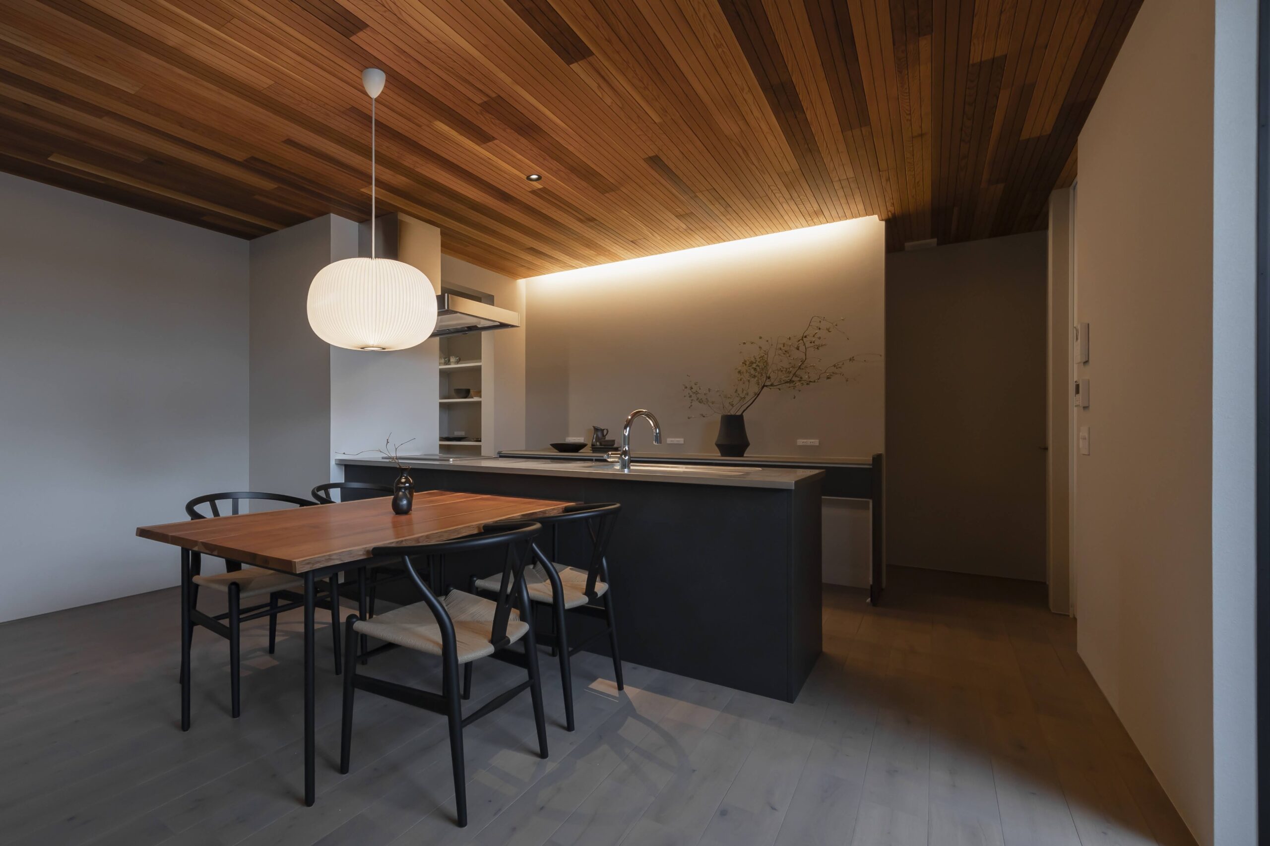 LDKは天井高を活かした開放感と素材の温もりが調和。