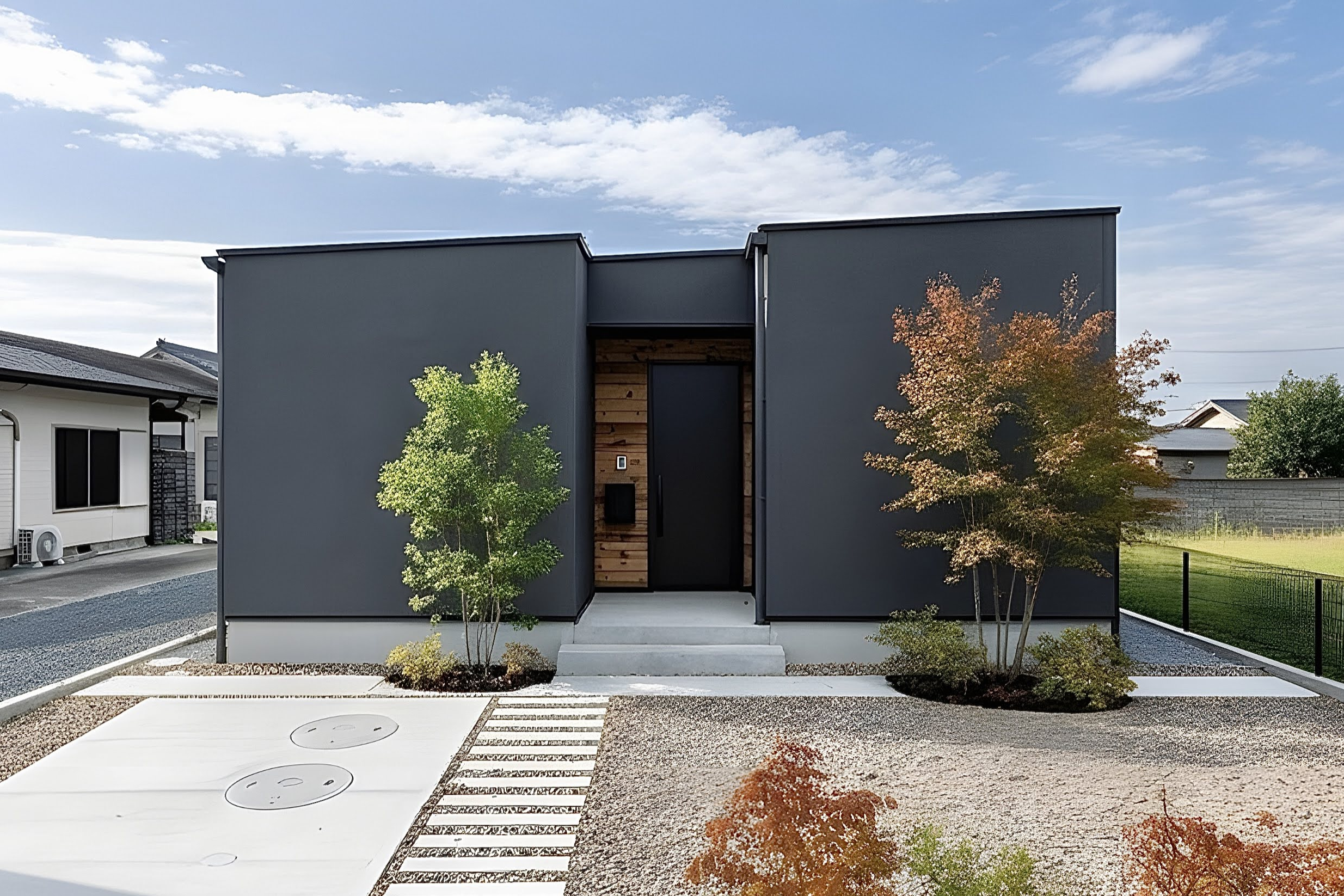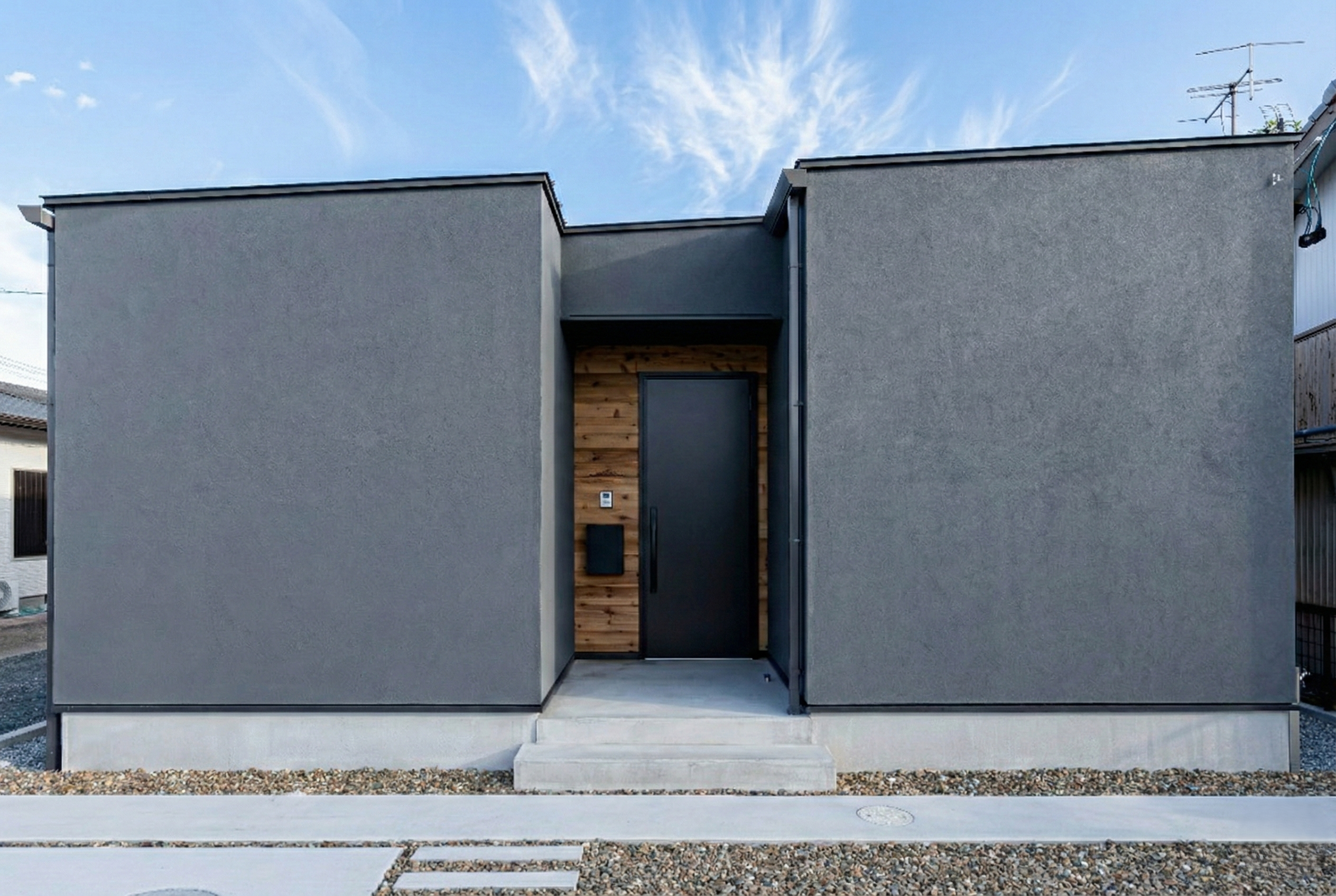 ご主人のこだわりである「かっこよさ」を体現しつつ、街並みに調和するモダンな佇まいです。
