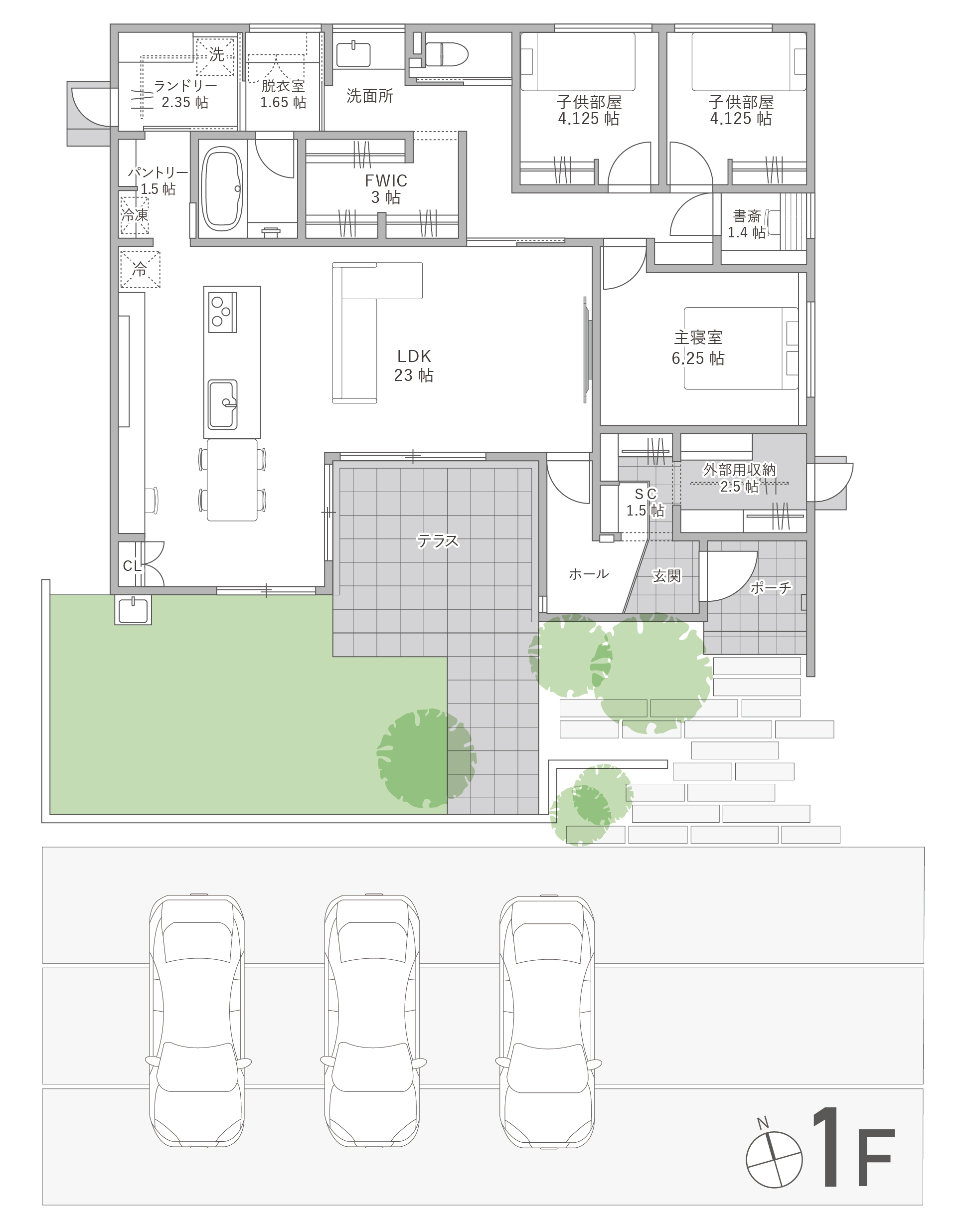 南面道路に面した495平米という広大な敷地。