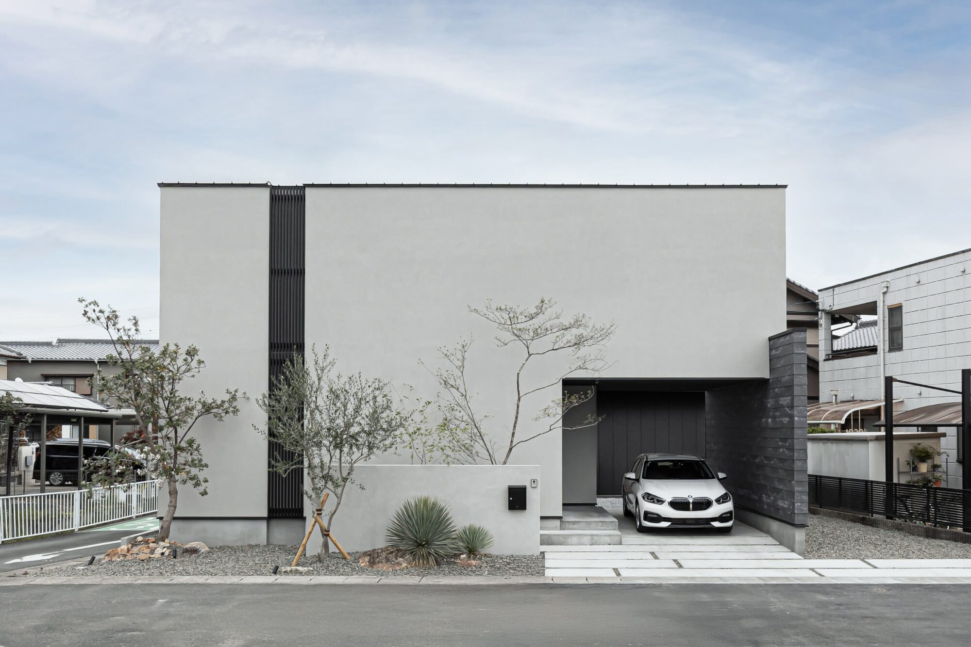 屋根付きの駐車スペースが玄関とつながり、雨の日でもストレスなく帰宅できます。車だけでなく、自転車置き場や屋外収納、趣味のスペースなど、多目的な空間づかいも見どころ。