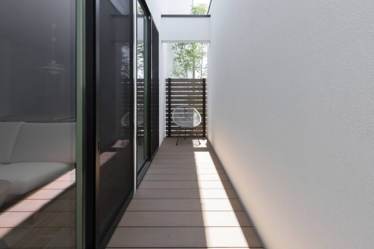 リビングの隣には約4帖のデッキテラス。誰からも見られないプライベートな屋外空間。