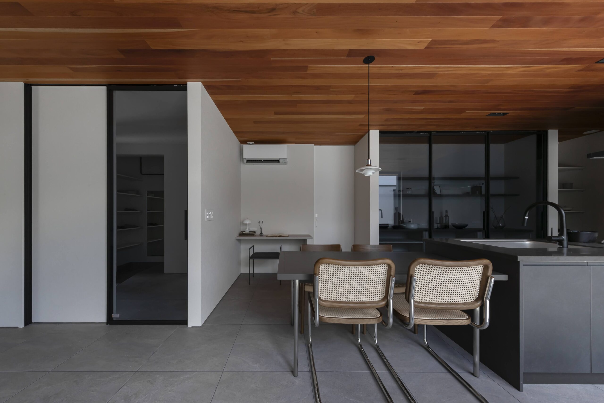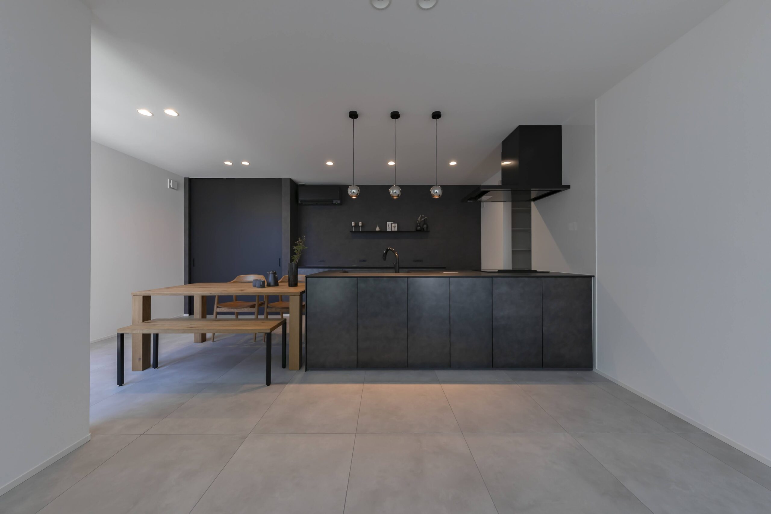 手元や洗い物がリビングから完全に見えなくなるため、急な来客でも慌てる必要ナシ。食事はカウンターでバルのように楽しみ、片付けもサッと完了。ダイニングテーブルを置かない分、リビングを広々と使える設計テクニックは必見です。