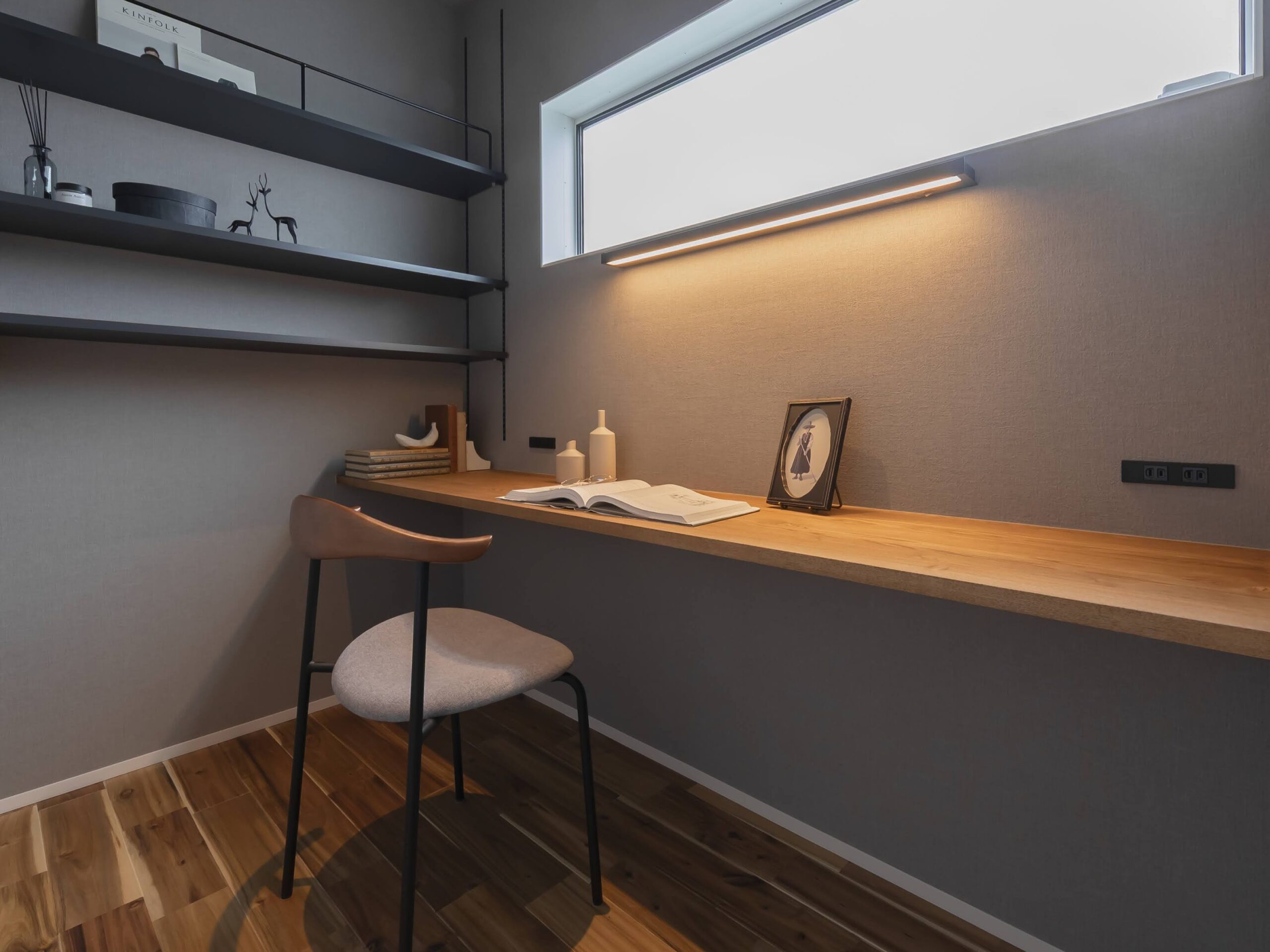 2階には、あえて寝室や子ども部屋から少し離した位置に、ご夫婦専用の「ゲーム部屋(書斎)」を。音が響くのを気にせず、お子様が寝静まった後に夫婦並んで趣味を満喫できる、大人のための秘密基地空間です。