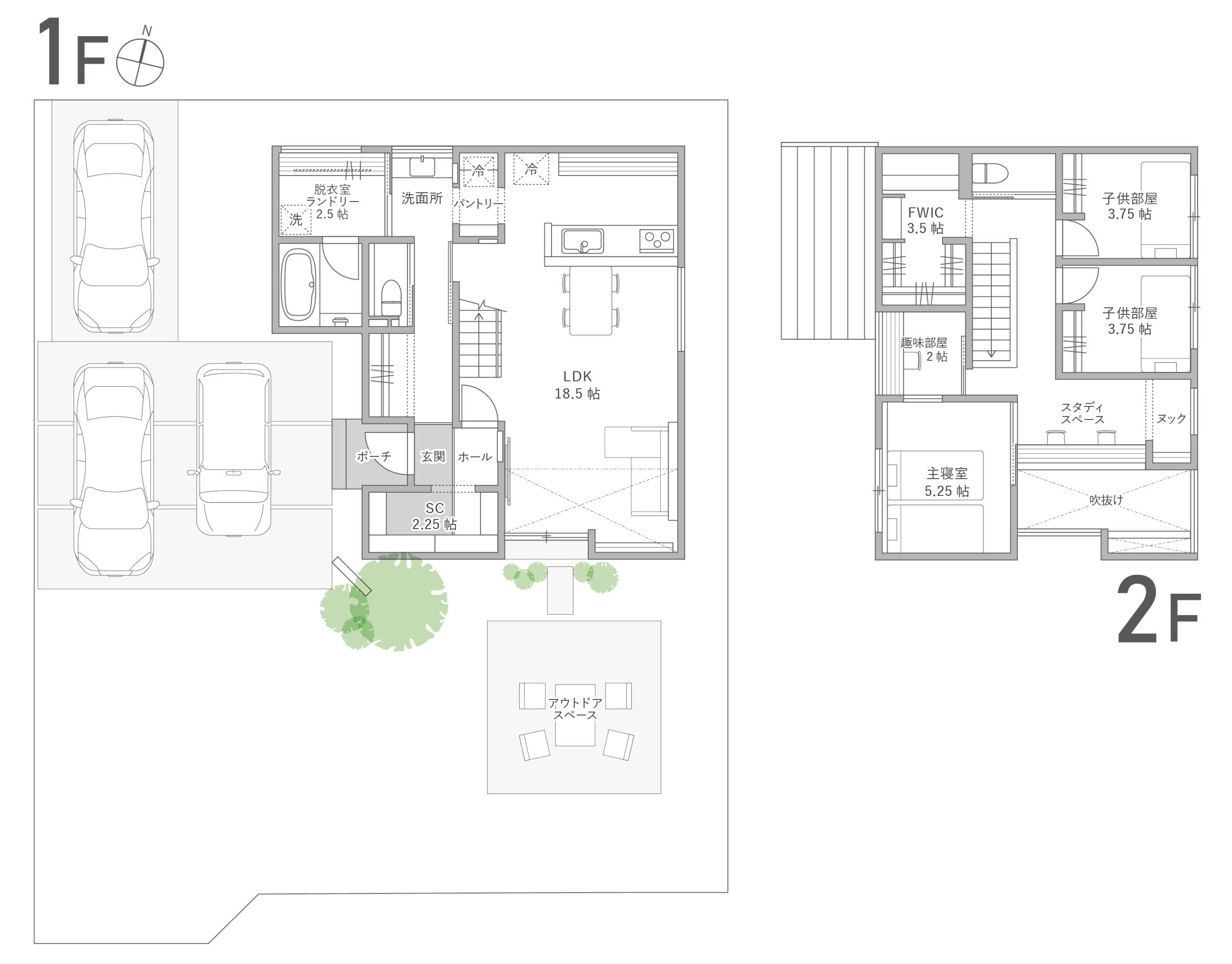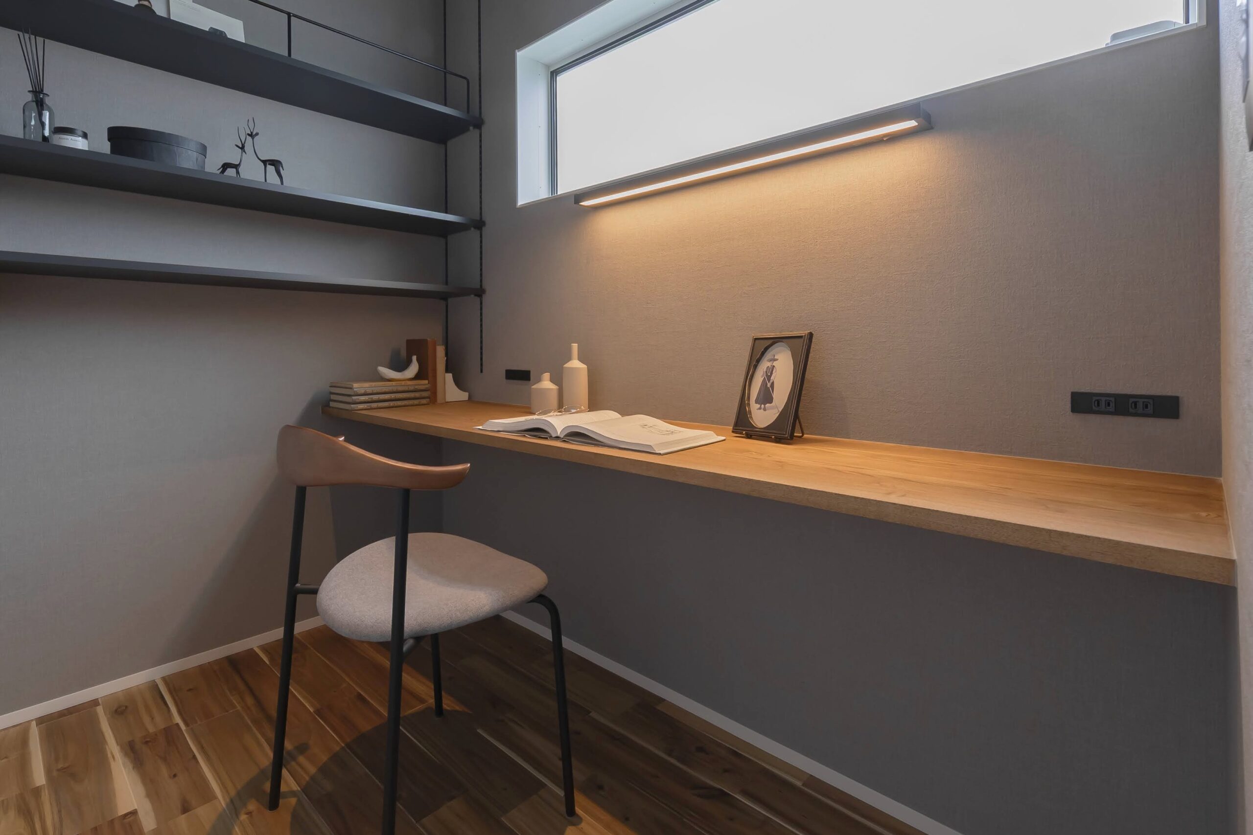 “好き”に没頭できる趣味部屋や、畳のヌック、吹き抜けに面したスタディコーナーなど、家族それぞれが思い思いに過ごせる空間を散りばめました。家族の気配を感じながらも、程よい距離感が心地よい間取りです。