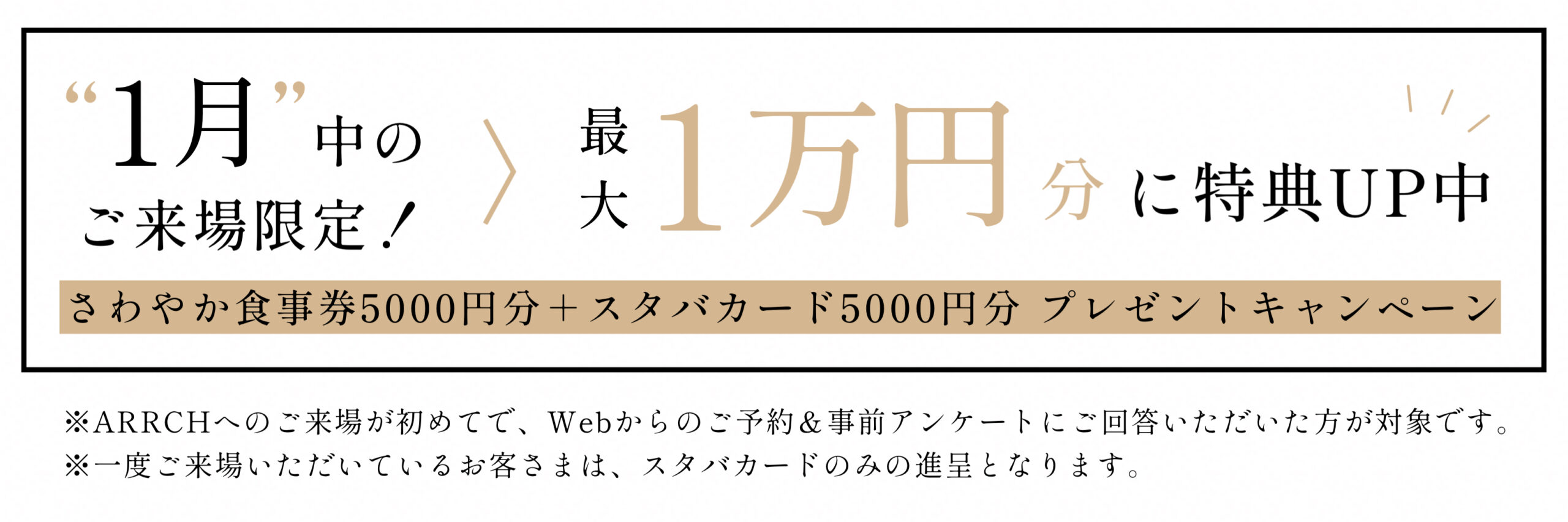 1月中限定!さわやか券+スタバカード1万円分