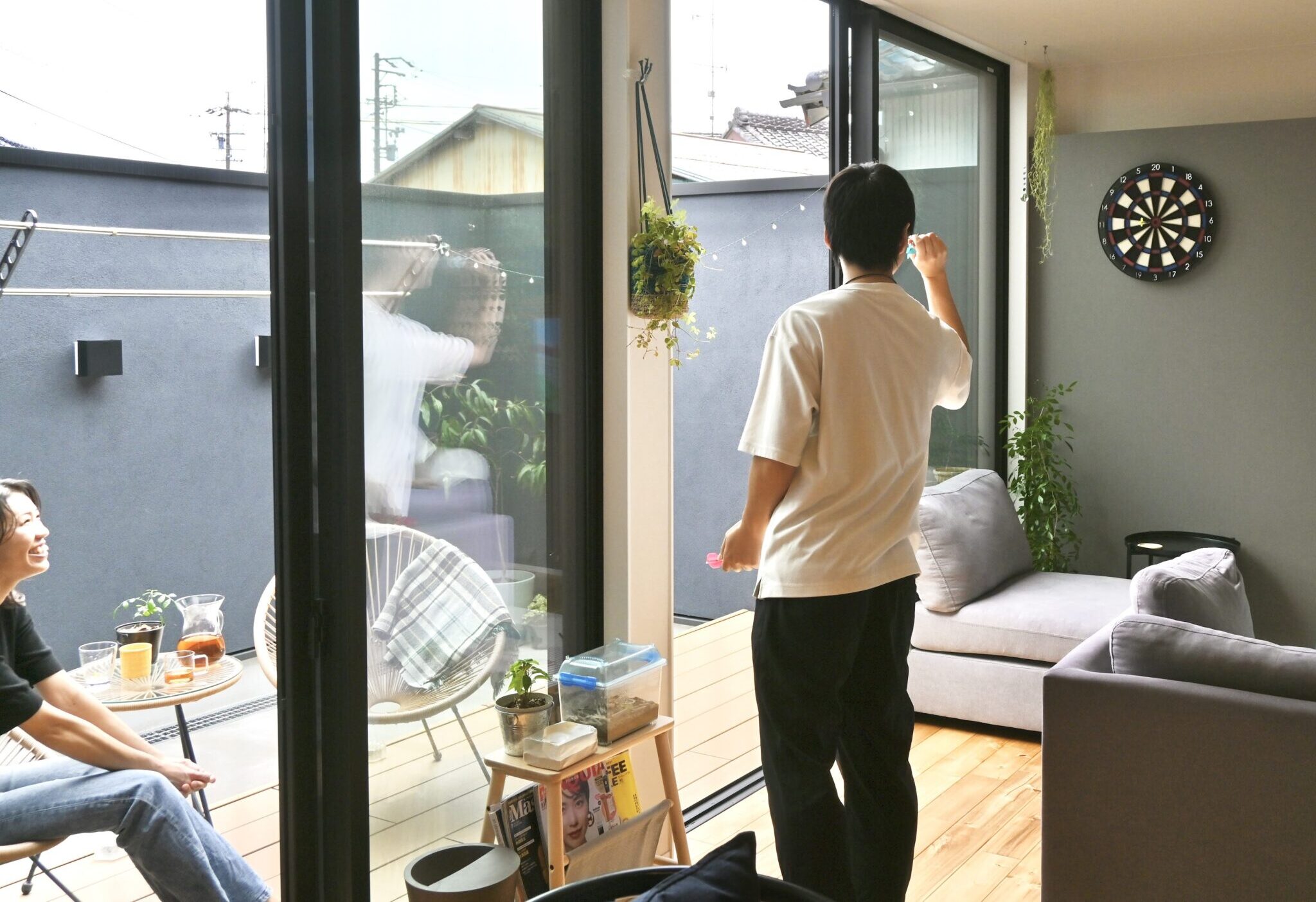実際に住み始めて一番感じたのは、中庭の良さです。気づけば毎日のように家族で過ごす場所になっています。朝はコーヒーを飲んだり、休日は焼肉やプールをしたり。外なのに周囲からの視線が気にならないので、まるで家の中の延長のように使えます。