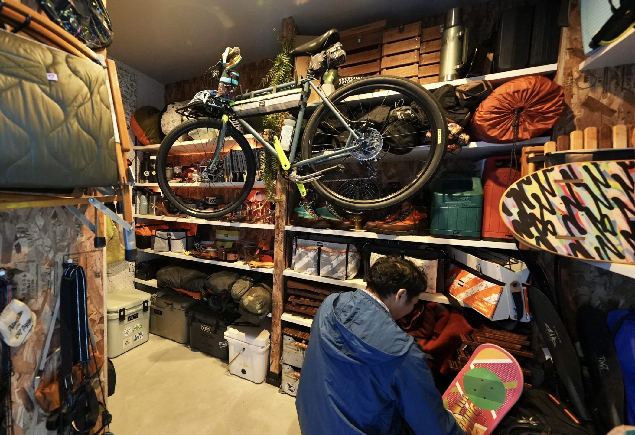 車を収めるというよりは、たくさんのキャンプ道具を置ける場所がほしかったので、雨にぬれずに荷物が出し入れができるよう、1階の玄関近くに作ってもらいました。